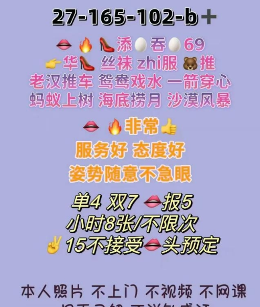 、保证金、照片验证、视频验证等任何提前付费的行为;以及引导下载APP,千万不要上当。同时也请注意仙人跳,在寻欢前不要露富和带过于贵重随身物品。本站只提供整合信息平台并不对寻欢经历负责,被骗一概与本站无关。信息真假请自行甄别,碰到有问题的信息,请及时举报给我们删除信息。