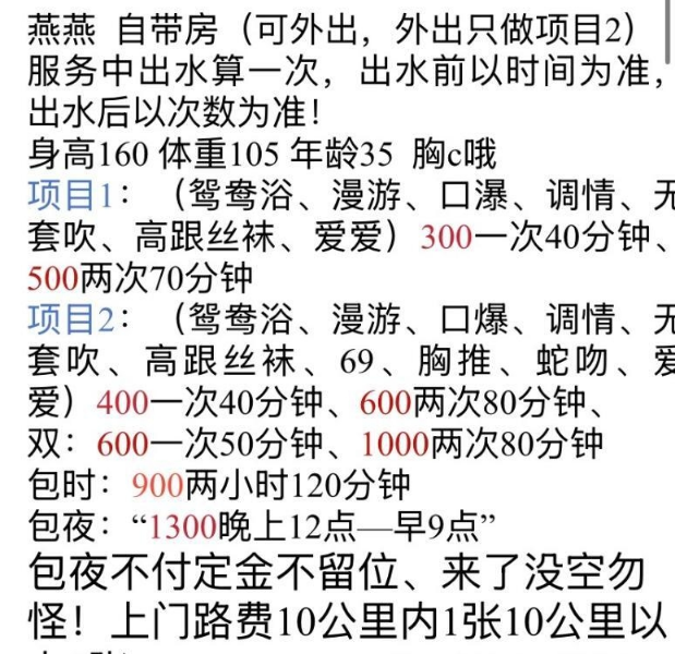 、保证金、照片验证、视频验证等任何提前付费的行为;以及引导下载APP,千万不要上当。同时也请注意仙人跳,在寻欢前不要露富和带过于贵重随身物品。本站只提供整合信息平台并不对寻欢经历负责,被骗一概与本站无关。信息真假请自行甄别,碰到有问题的信息,请及时举报给我们删除信息。